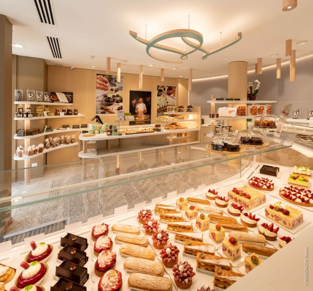 Notre premier travail d’équipe a été de repenser l’esprit graphique de la marque. En effet, nous avons souhaité donner une direction artistique épurée et moderne afin de refléter le positionnement haut de gamme de la pâtisserie.